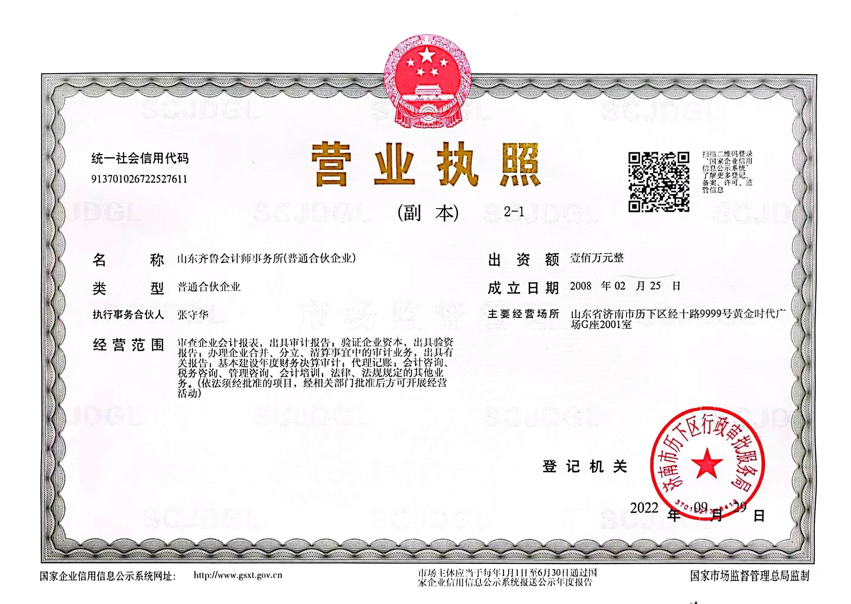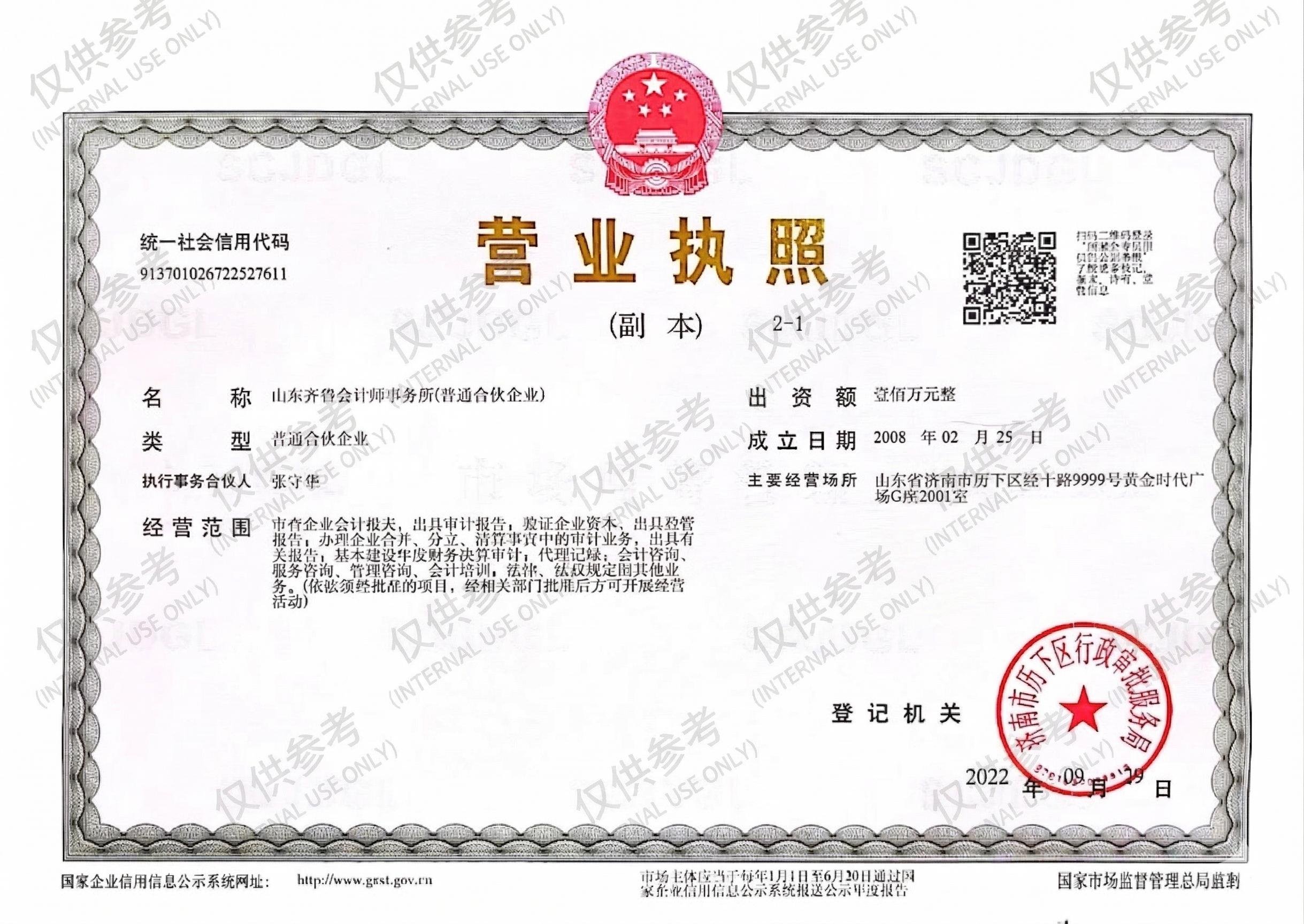 山东齐鲁会计师事务所于2008年由山东省工商行政管理局、山东省财政厅批准的服务机构,设在济南,均设有办事处,是一家综合性、规范化、合伙制的会计师事务所,我们以“做管理者推崇的财务咨询机构”为愿景,以“支持成长型企业提高财务能力”为宗旨,以“专业、创新、感恩、责任、成就、团队”为价值观,已向社会提供一万余项(次)“审计、评...